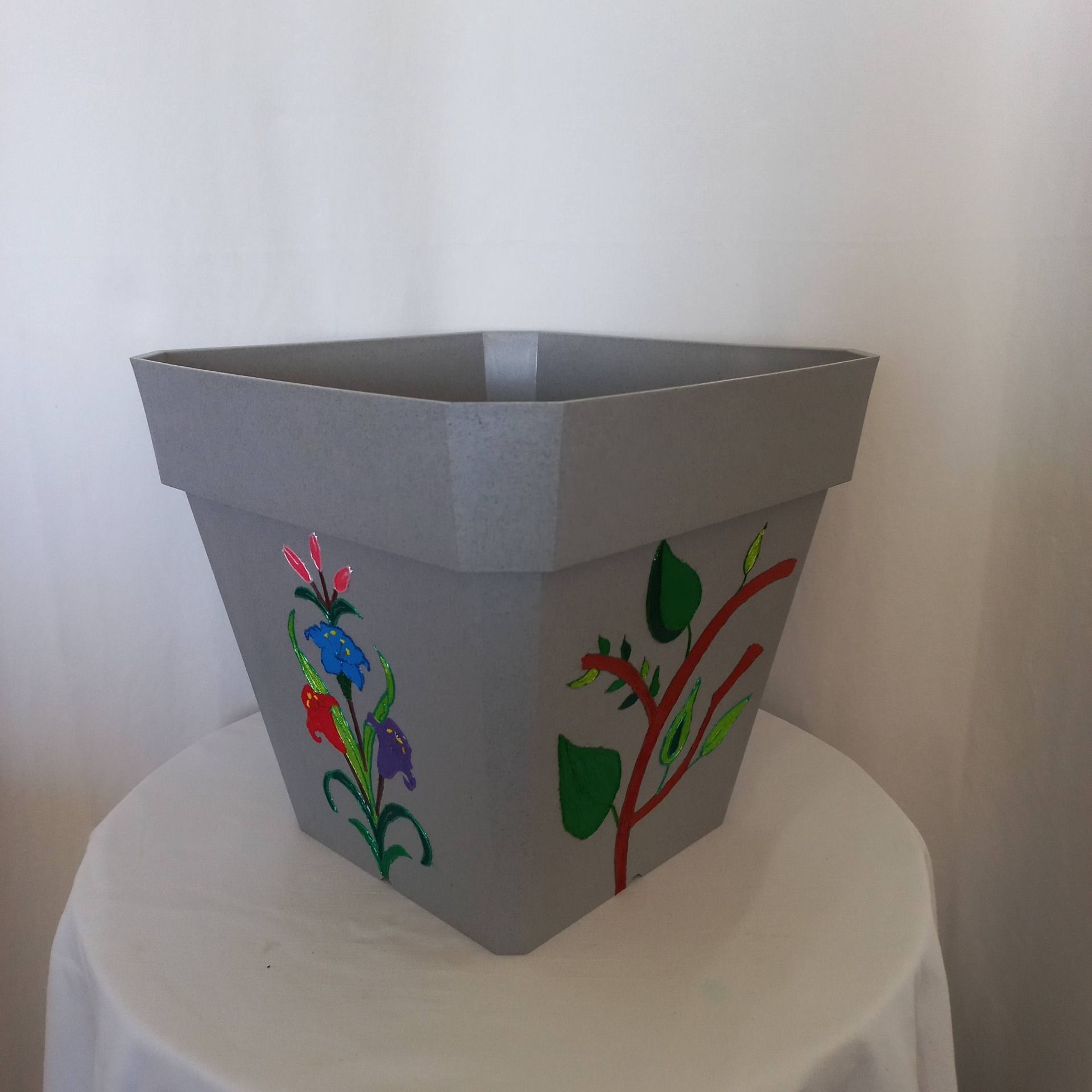 Cache pot carré travaillé avec du sable et de la peinture acrylique toutes les faces sont travaillé.