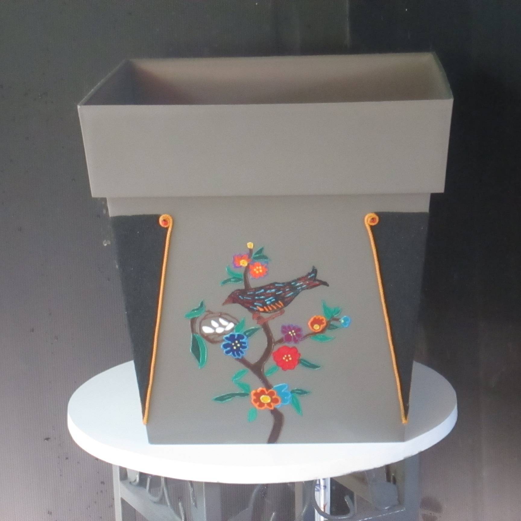 Cache pot travaillé avec du sable de couleurs et de la peinture acrylique.