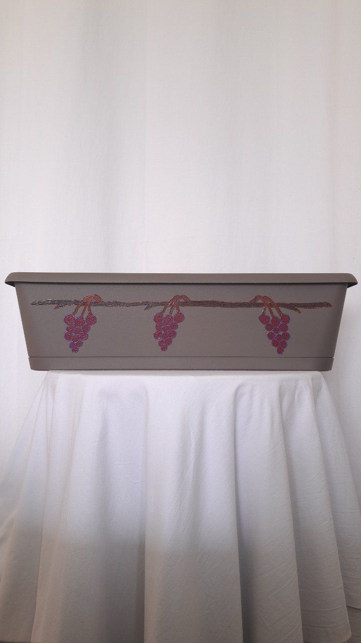 Jardinière avec soucoupe intégré travaillé avec de la peinture acrylique et de la peinture 3D.